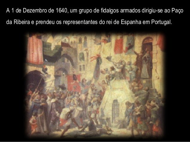 14. 14. A 1 de Dezembro de 1640, um grupo de fidalgos armados dirigiu-se ao Paço da Ribeira e prendeu os representantes do rei de Espanha em Portugal.