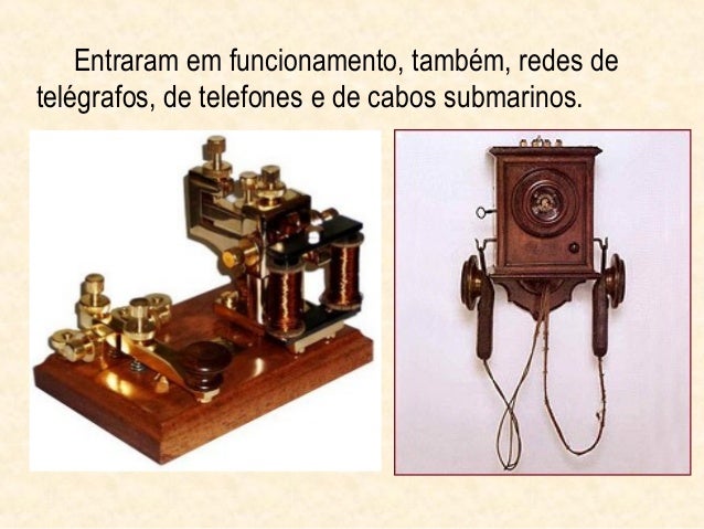 11. 11. Entraram em funcionamento, também, redes detelégrafos, de telefones e de cabos submarinos.