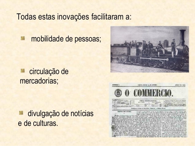 12. 12. Todas estas inovações facilitaram a: mobilidade de pessoas; circulação de mercadorias; divulgação de notíciase de culturas.