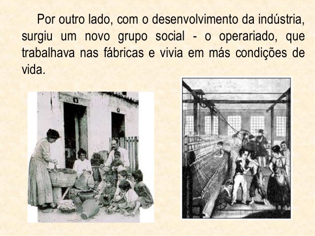 15. 15. Por outro lado, com o desenvolvimento da indústria,surgiu um novo grupo social - o operariado, quetrabalhava nas fábricas e vivia em más condições devida.