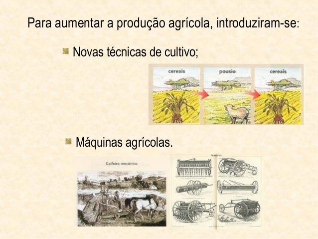 4. 4. Para aumentar a produção agrícola, introduziram-se : Novas técnicas de cultivo; Máquinas agrícolas.