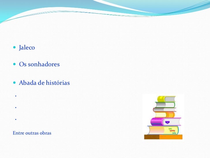 6. 6. Jaleco <br />Os sonhadores<br />Abada de histórias<br /> . <br /> .<br /> .<br />Entre outras obras<br />