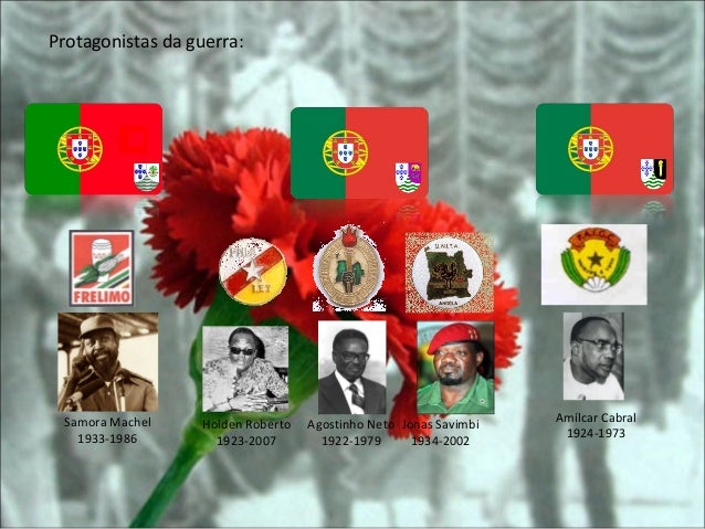21. 21. Protagonistas da guerra: Samora Machel Amílcar Cabral Holden Roberto Agostinho Neto Jonas Savimbi 1933-1986 1924-1973 1923-2007 1922-1979 1934-2002