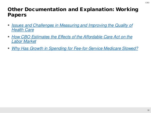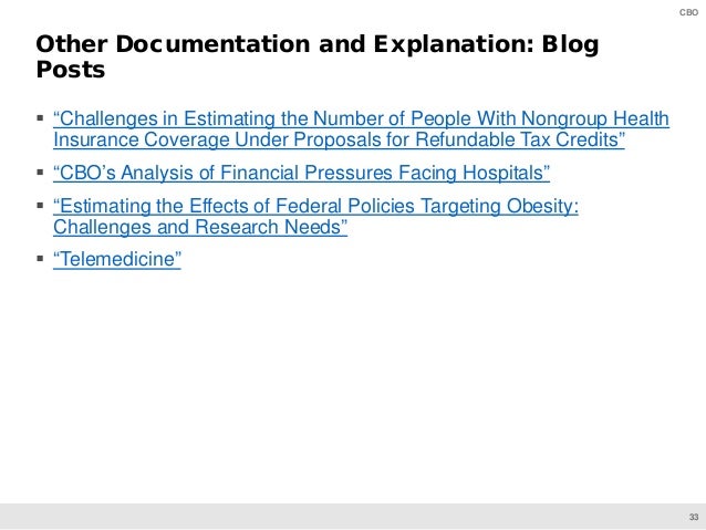 Spending on federal health care programs is growing rapidly, driven by rising enrollment and rising health care spending per enrollee. This presentation describes CBO’s analyses related to health care, explains how the agency uses its health insurance simulation model, and provides examples of how CBO documents its work.