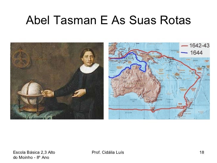 18. 18. Abel Tasman E As Suas Rotas Escola Básica 2,3 Alto do Moinho - 8º Ano Prof. Cidália Luís