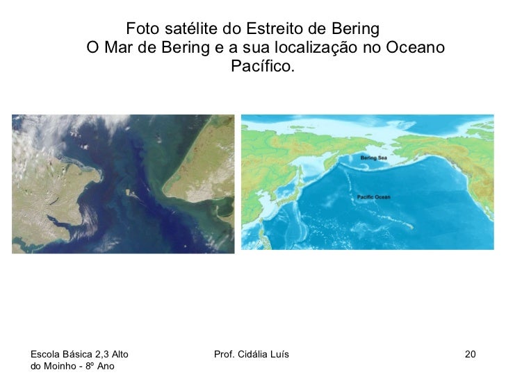 20. 20. Foto satélite do Estreito de Bering O Mar de Bering e a sua localização no Oceano Pacífico. Escola Básica 2,3 Alto do Moinho - 8º Ano Prof. Cidália Luís