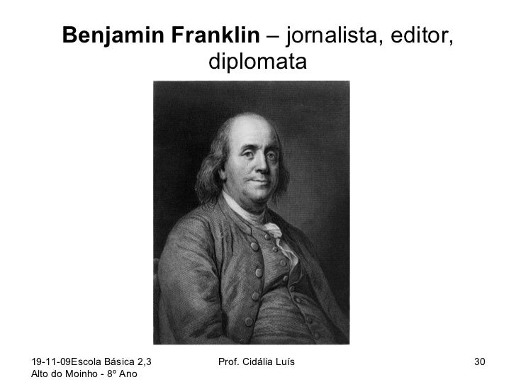 30. 30. Benjamin Franklin – jornalista, editor, diplomata 19-11-09 Escola Básica 2,3 Alto do Moinho - 8º Ano Prof. Cidália Luís