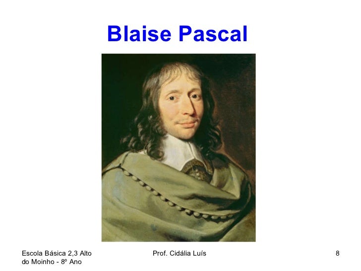 8. 8. Blaise Pascal Escola Básica 2,3 Alto do Moinho - 8º Ano Prof. Cidália Luís