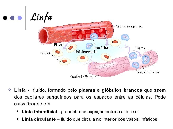 19. 19. Linfa <ul><li>Linfa - fluído, formado pelo plasma e glóbulos brancos que saem dos capilares sanguíneos para os espaços entre as células. Pode classificar-se em: </li></ul><ul><ul><li>Linfa intersticial - preenche os espaços entre as células. </li></ul></ul><ul><ul><li>Linfa circulante – fluido que circula no interior dos vasos linfáticos. </li></ul></ul>