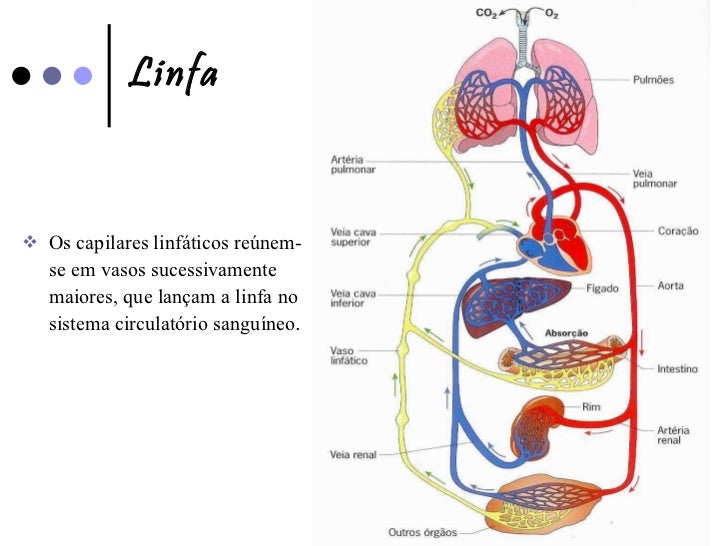 22. 22. Linfa <ul><li>Os capilares linfáticos reúnem-se em vasos sucessivamente maiores, que lançam a linfa no sistema circulatório sanguíneo . </li></ul>