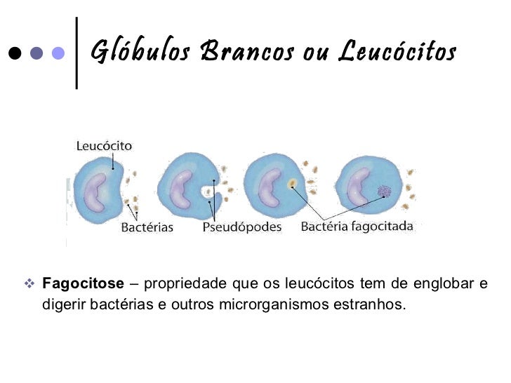 3. 3. Glóbulos Brancos ou Leucócitos <ul><li>Fagocitose – propriedade que os leucócitos tem de englobar e digerir bactérias e outros microrganismos estranhos. </li></ul>