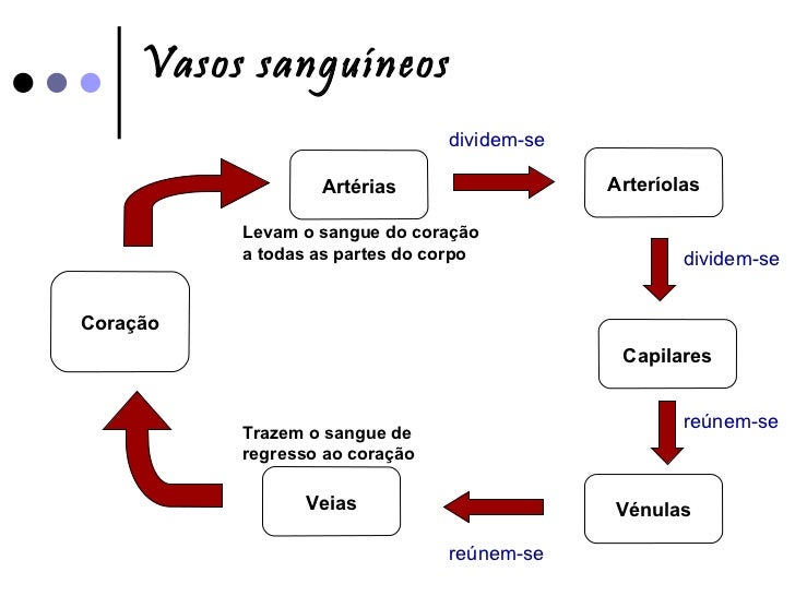 9. 9. Vasos sanguíneos Coração Artérias Arteríolas Capilares Vénulas Veias dividem-se dividem-se reúnem-se reúnem-se Levam o sangue do coração a todas as partes do corpo Trazem o sangue de regresso ao coração