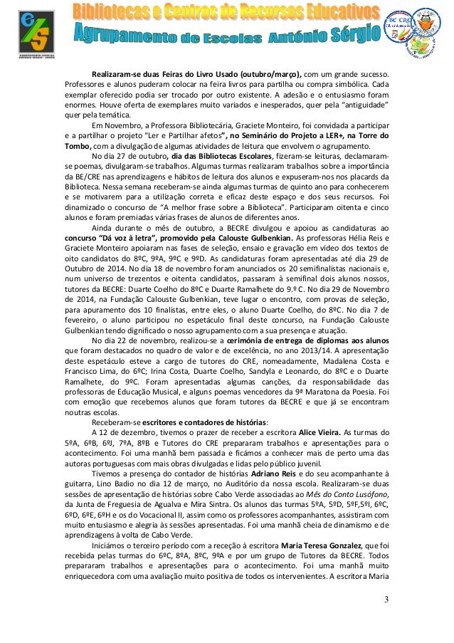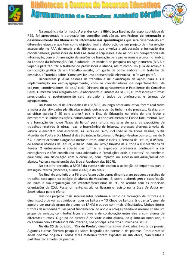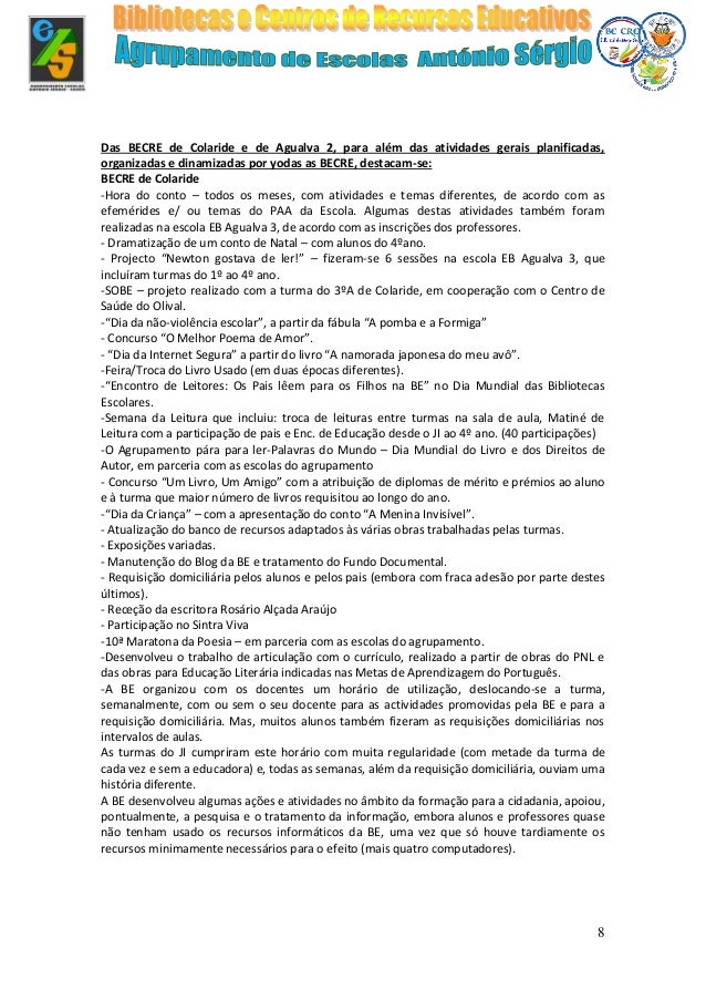 Relatório das atividades realizadas pelas BE/CRE ao longo do ano letivo de 2015/2016