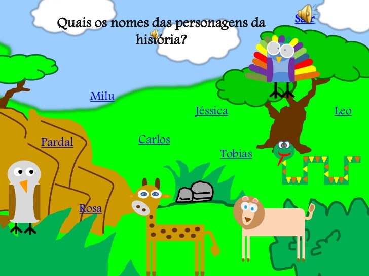 26. 26. Quais os nomes das personagens da Sair história? Milu Jéssica LeoPardal Carlos Tobias Rosa