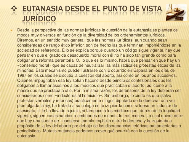 Desde la perspectiva de las normas jurídicas la cuestión de la eutanasia s...