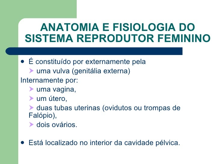 2. 2. ANATOMIA E FISIOLOGIA DO SISTEMA REPRODUTOR FEMININO <ul><li>É constituído por externamente pela </li></ul><ul><li> uma vulva (genitália externa) </li></ul><ul><li>Internamente por: </li></ul><ul><li> uma vagina, </li></ul><ul><li> um útero, </li></ul><ul><li> duas tubas uterinas (ovidutos ou trompas de Falópio), </li></ul><ul><li> dois ovários. </li></ul><ul><li>Está localizado no interior da cavidade pélvica. </li></ul>