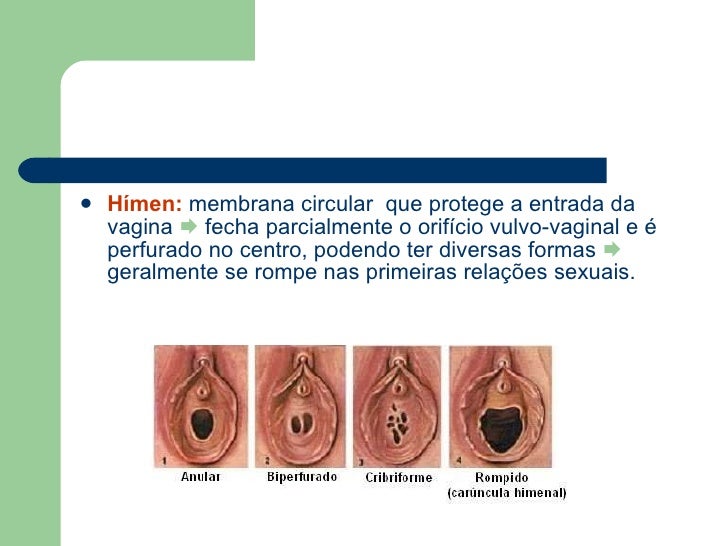 5. 6. <ul><li>Hímen: membrana circular que protege a entrada da vagina  fecha parcialmente o orifício vulvo-vaginal e é perfurado no centro, podendo ter diversas formas  geralmente se rompe nas primeiras relações sexuais. </li></ul>