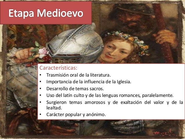 8. 8. Del siglo V al XV.Se produjo en Europa, principalmenteal fragmentarse en Imperio Romano,dando lugar a las distintas lenguasromances. Las obras solían ser decontenido caballeresco o religioso.