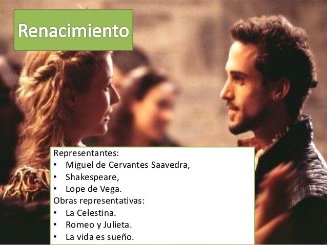 16. 16. Representantes:• Miguel de Cervantes Saavedra,• Shakespeare,• Lope de Vega.Obras representativas:• La Celestina.• Romeo y Julieta.• La vida es sueño.
