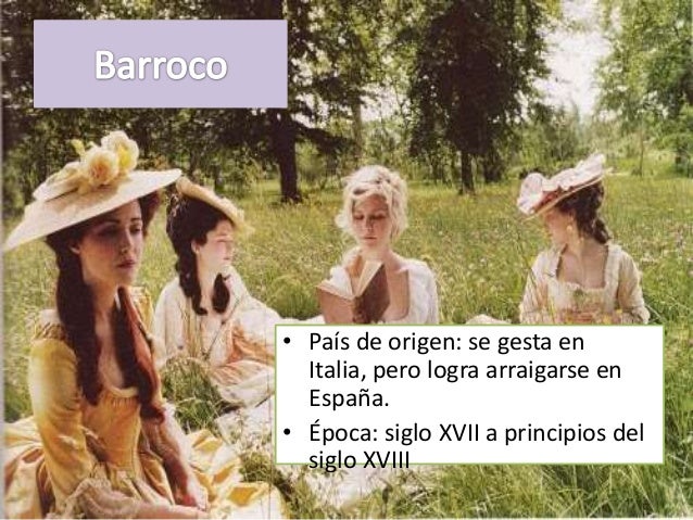 17. 17. • País de origen: se gesta en Italia, pero logra arraigarse en España.• Época: siglo XVII a principios del siglo XVIII