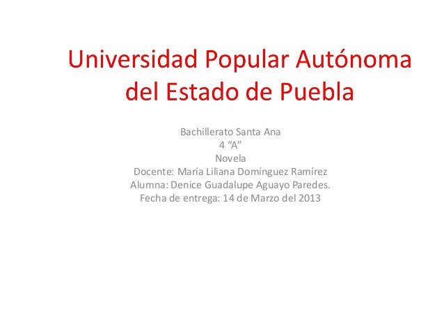1. 1. Bachillerato Santa Ana 4 “A” Novela Docente: María Liliana Domínguez RamírezAlumna: Denice Guadalupe Aguayo Paredes. Fecha de entrega: 14 de Marzo del 2013