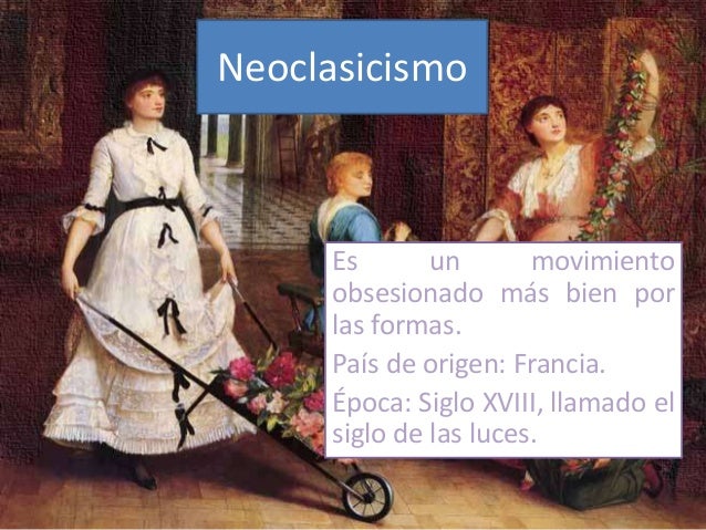 20. 20. Neoclasicismo Es un movimiento obsesionado más bien por las formas. País de origen: Francia. Época: Siglo XVIII, llamado el siglo de las luces.