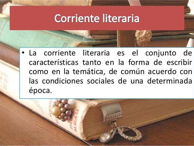 2. 2. • La corriente literaria es el conjunto de características tanto en la forma de escribir como en la temática, de común acuerdo con las condiciones sociales de una determinada época.