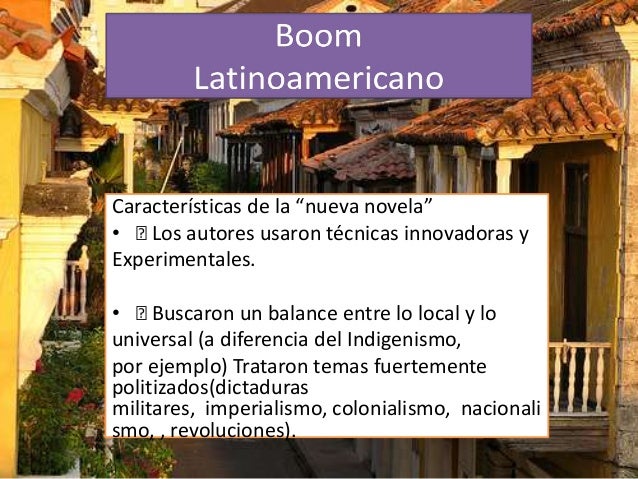 40. 40. Características de la “nueva novela”• „ Los autores usaron técnicas innovadoras yExperimentales.• „ Buscaron un balance entre lo local y louniversal (a diferencia del Indigenismo,por ejemplo) Trataron temas fuertementepolitizados(dictadurasmilitares, imperialismo, colonialismo, nacionalismo, , revoluciones).