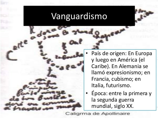 43. 43. • País de origen: En Europa y luego en América (el Caribe). En Alemania se llamó expresionismo; en Francia, cubismo; en Italia, futurismo.• Época: entre la primera y la segunda guerra mundial, siglo XX.