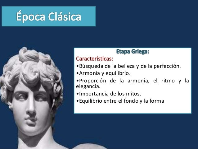 4. 4. •Búsqueda de la belleza y de la perfección.•Armonía y equilibrio.•Proporción de la armonía, el ritmo y laelegancia.•Importancia de los mitos.•Equilibrio entre el fondo y la forma