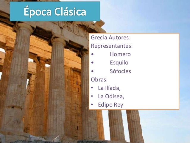 5. 5. Grecia Autores:Representantes:• Homero• Esquilo• SófoclesObras:• La Ilíada,• La Odisea,• Edipo Rey