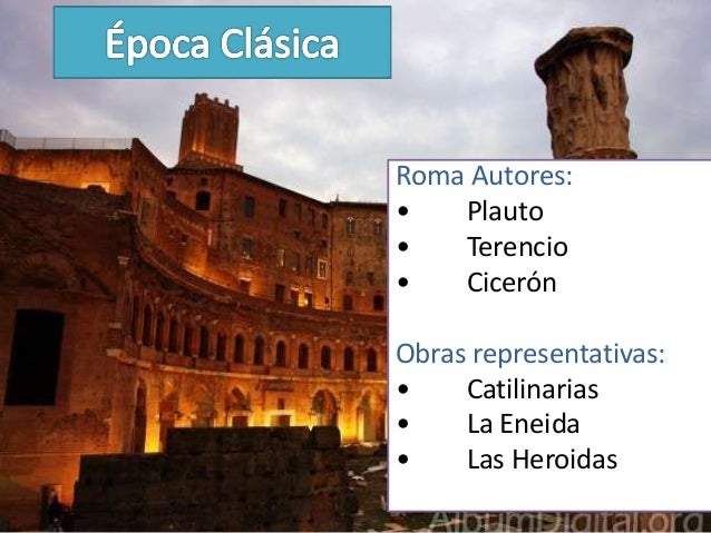7. 7. Roma Autores:• Plauto• Terencio• CicerónObras representativas:• Catilinarias• La Eneida• Las Heroidas