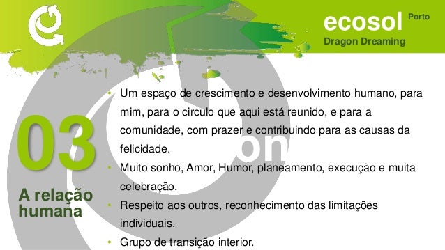 Apresentação das conclusões da primeira sessão de Dragon Dreaming no âmbito do Encontro "Sonhar a Economia Solidária no Porto" que tomou lugar no passado dia 1 Novembro de 2015, no Pavilhão-Jardim do PINC / Pólo de Indústrias Criativas da Universidade do Porto.
