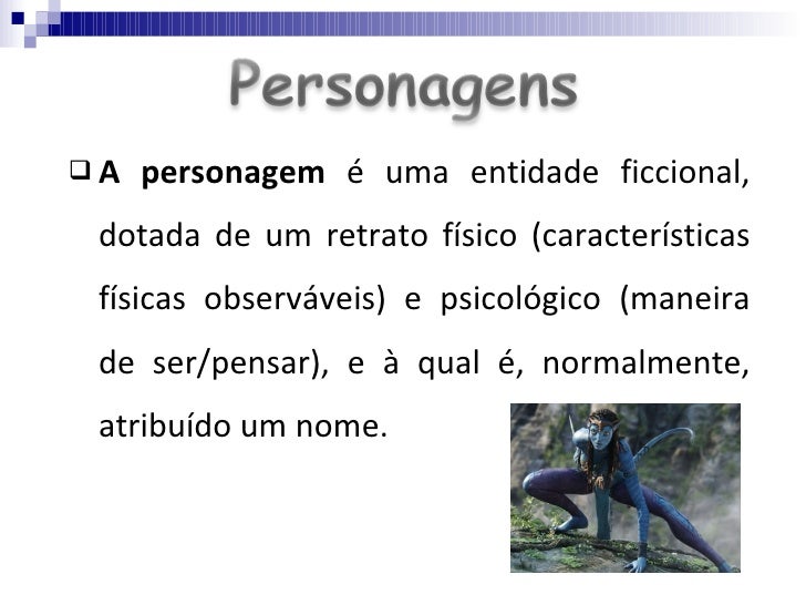 <ul><li>A personagem  é uma entidade ficcional, dotada de um retrato físico (características físicas observáveis) e psicol...