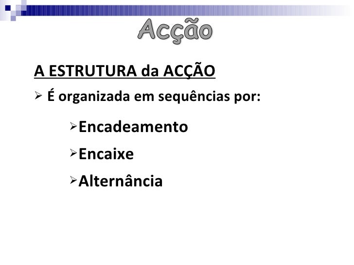 <ul><li>A ESTRUTURA da ACÇÃO </li></ul><ul><li>É organizada em sequências por: </li></ul><ul><ul><ul><li>Encadeamento </li...