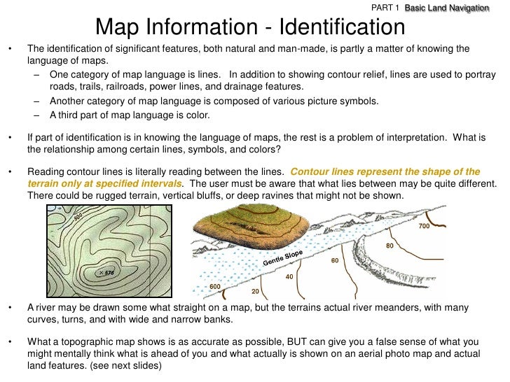 108. 108. PART 1 Basic Land Navigation Map Information – Identification What a Topo mapand actual Land features show