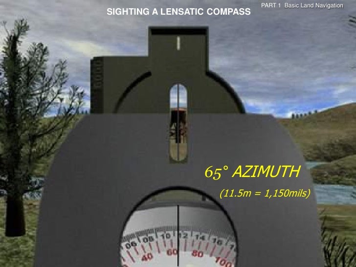 36. 36. PART 1 Basic Land NavigationSIGHTING A LENSATIC COMPASS 65° AZIMUTH (11.5m = 1,150mils)