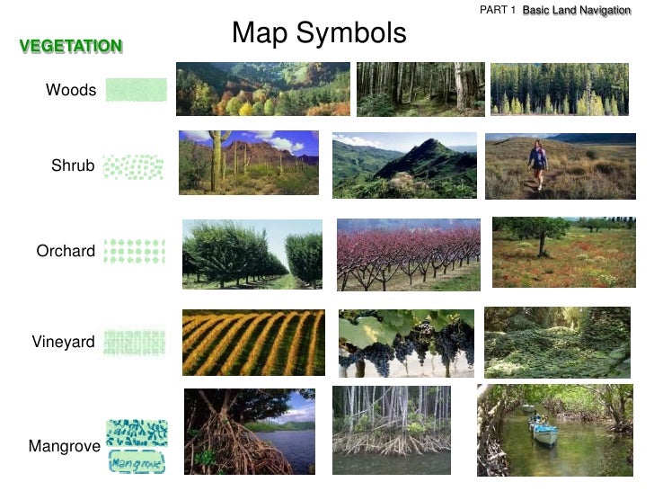 67. 67. PART 1 Basic Land NavigationVEGETATION Map Symbols Woods Shrub Orchard VineyardMangrove