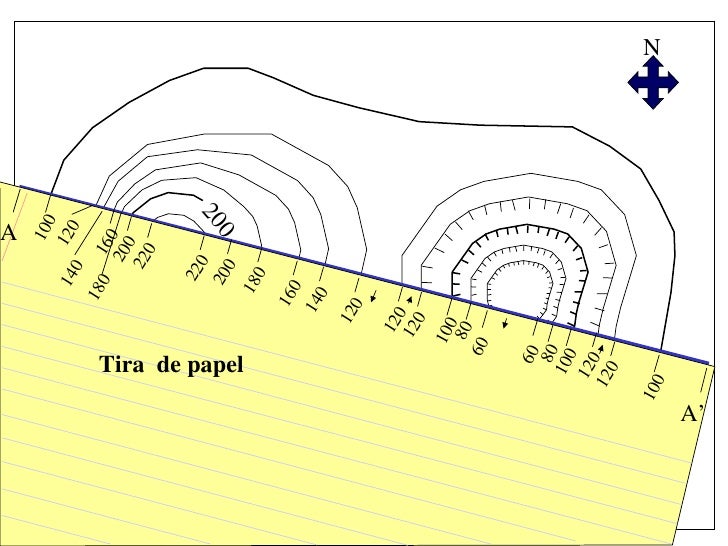 4. 4. CI =20 ft. 100 200 100 A A’ Tira de papel A A’ 100 120 120 100 80 60 60 80 100 120 120 120 140 160 180 200 220 220 200 180 160 140 120 100 N