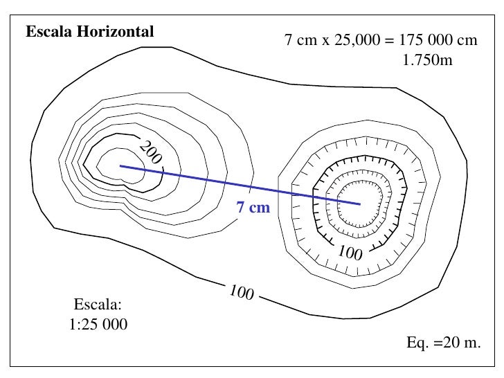 8. 8. Eq. =20 m. 100 200 100 Escala 1:25 000 = 25 000 cm Escala Horizontal 1 cm