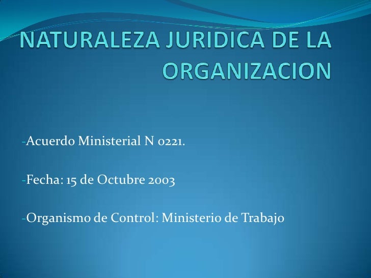 2. 2. NATURALEZA JURIDICA DE LA ORGANIZACION<br /><ul><li>Acuerdo Ministerial N 0221.