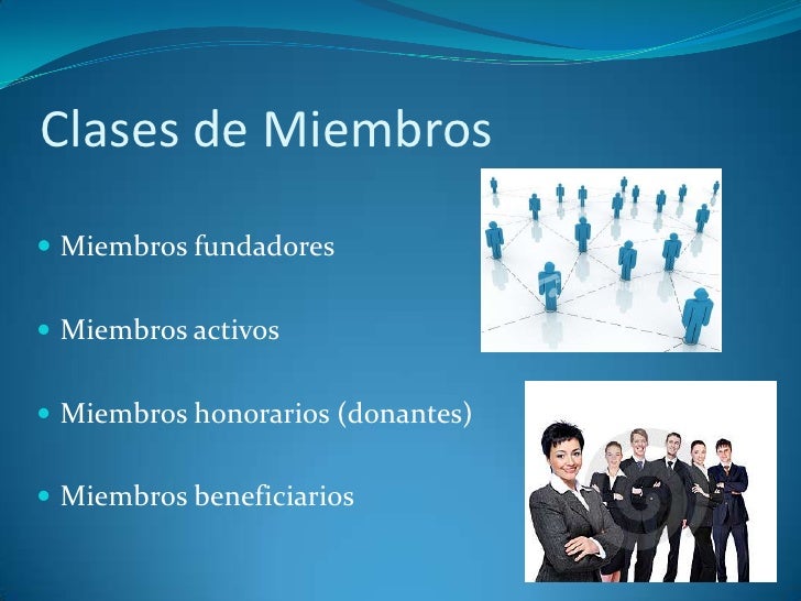 4. 4. Organismo de Control: Ministerio de Trabajo</li></li></ul><li>Clases de Miembros<br />Miembros fundadores<br />Miembros activos<br />Miembros honorarios (donantes)<br />Miembros beneficiarios<br />