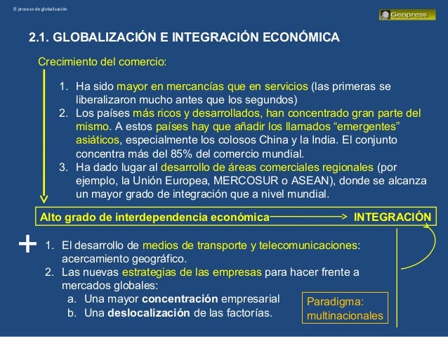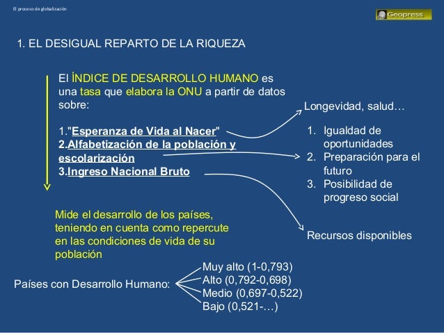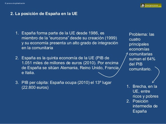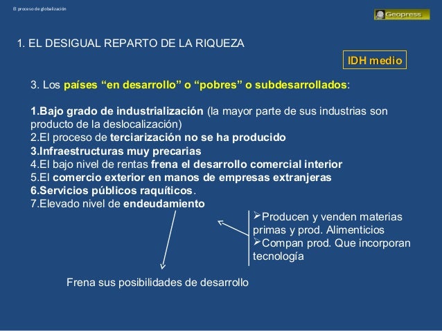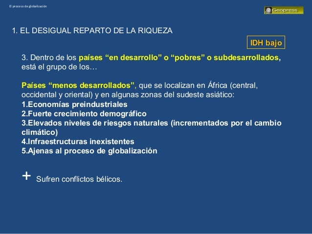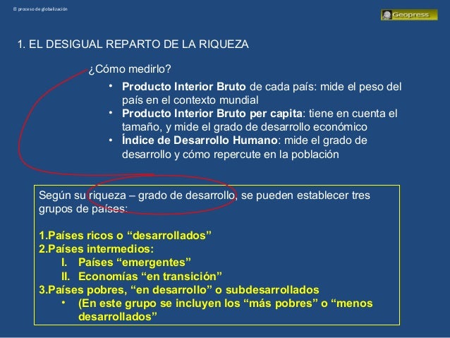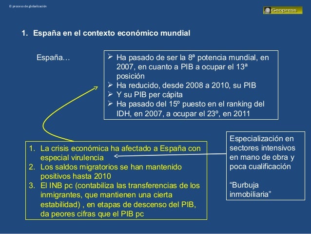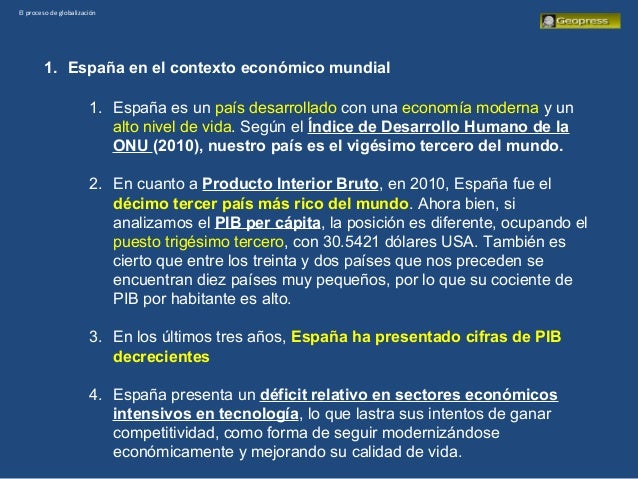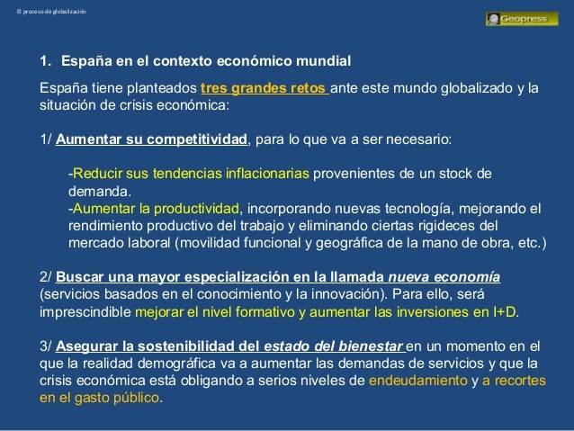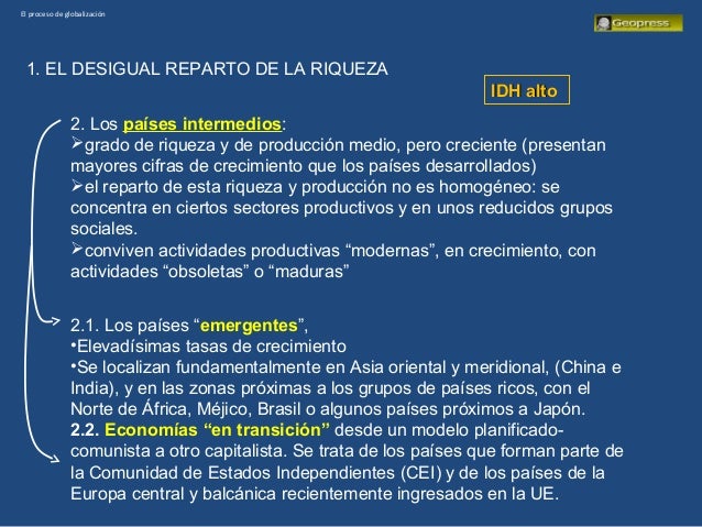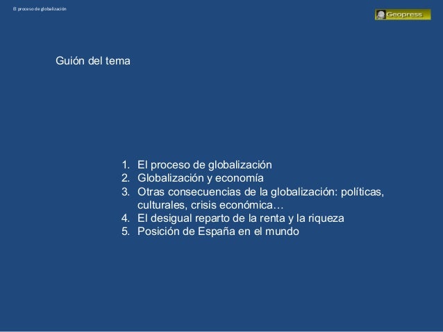 Globalización. El proceso de mundialización económica y sus repercusiones sobre el reparto de la riqueza. La posición de España
