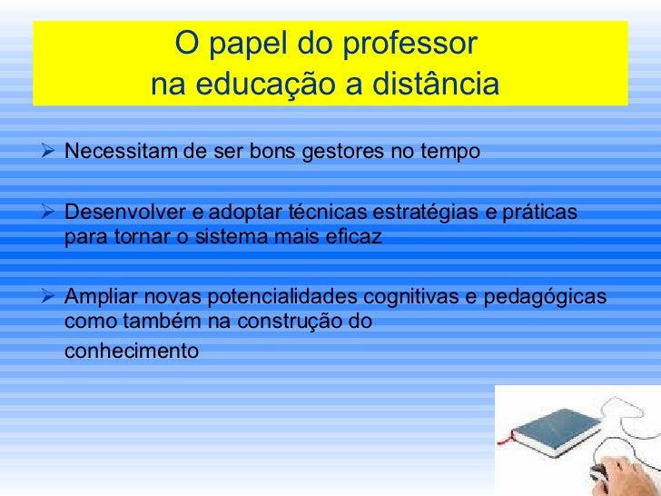 O papel do professor  na educação a distância   <ul><li>Necessitam de ser bons gestores no tempo </li></ul><ul><li>Desenvo...