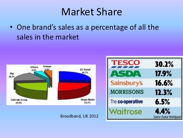 Market Share• One brand’s sales as a percentage of all the  sales in the market               Broadband, UK 2012