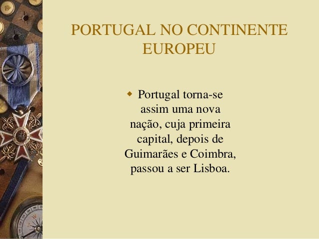 12. 12. PORTUGAL NO CONTINENTE EUROPEU  Portugal torna-se assim uma nova nação, cuja primeira capital, depois de Guimarães e Coimbra, passou a ser Lisboa.