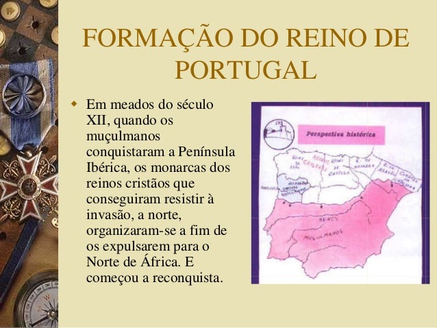 2. 2. FORMAÇÃO DO REINO DE PORTUGAL  Em meados do século XII, quando os muçulmanos conquistaram a Península Ibérica, os monarcas dos reinos cristãos que conseguiram resistir à invasão, a norte, organizaram-se a fim de os expulsarem para o Norte de África. E começou a reconquista.