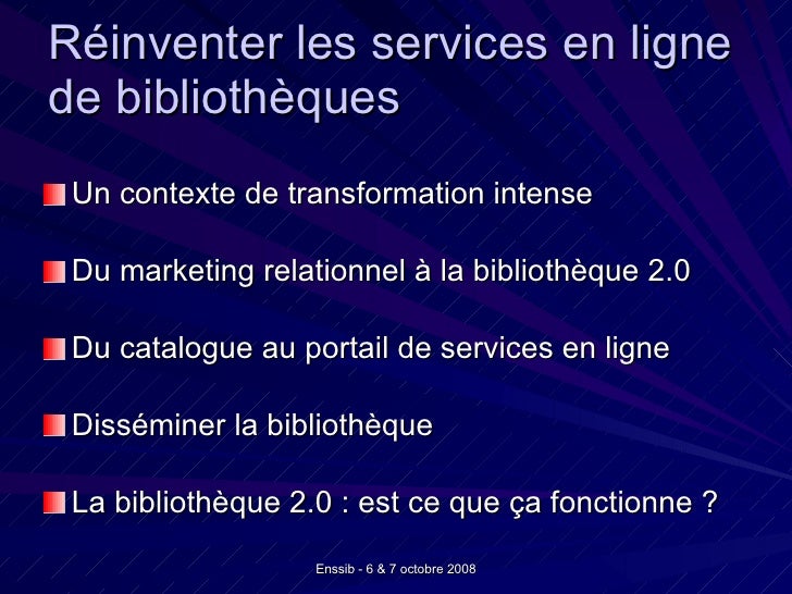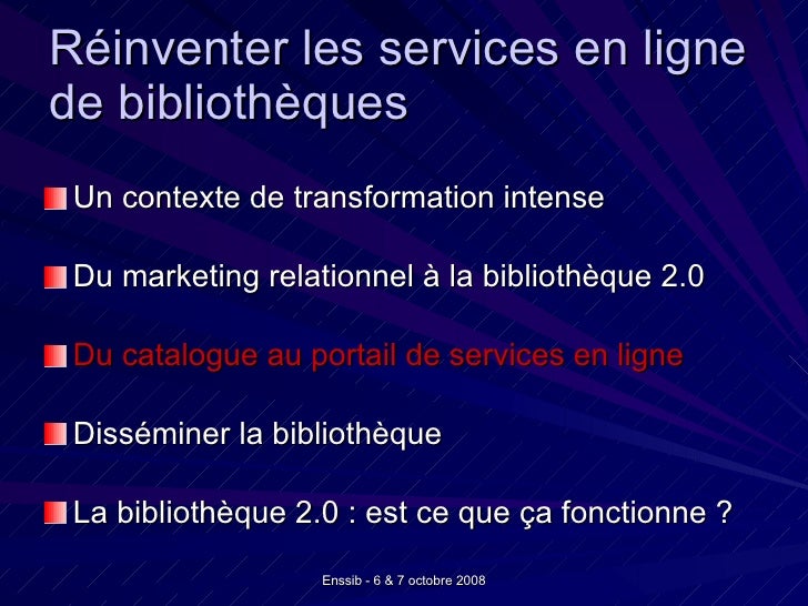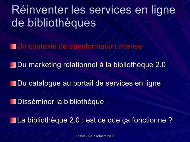 Réinventer les services en ligne de bibliothèques : marketing, web 2.0, bibliothèque hybride