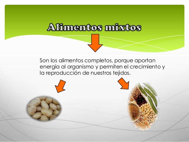 6. 6. Son los alimentos completos, porque aportanenergía al organismo y permiten el crecimiento yla reproducción de nuestros tejidos.