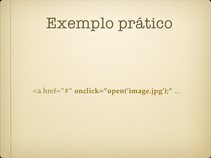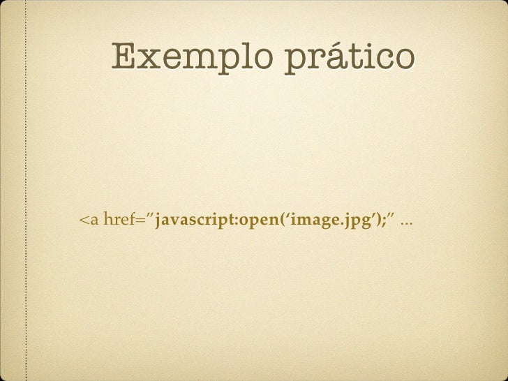 10. 10. Exemplo prático <a href=”#” onclick=”open(‘image.jpg’);” ...